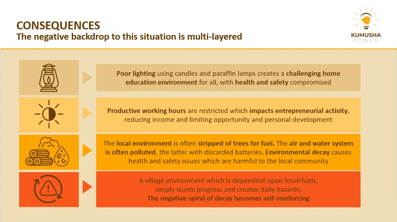 Across much of Africa, access to reliable energy is a daily challenge for millions of households. Within Zimbabwe research indicates rural households spend on average US$10-15 per month on lighting products alone, like oil, batteries, kerosene, lamps and candles. A significant spend for rural households.